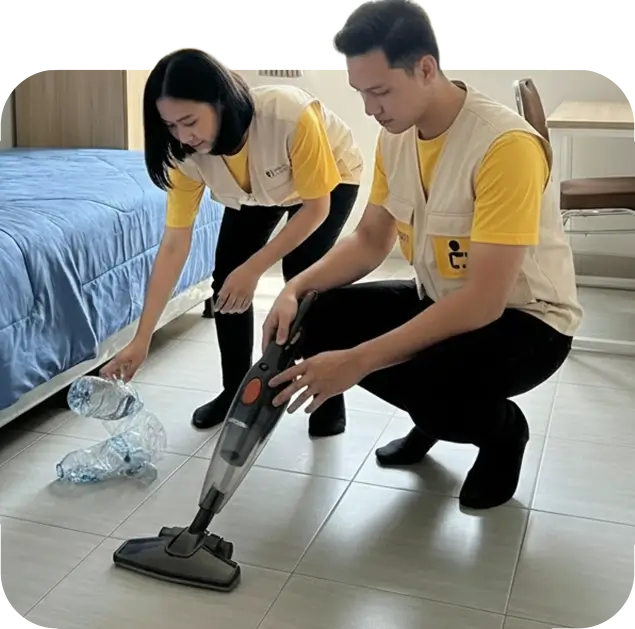 KostCare hadir buat jadi support system kamu. Kita pastiin kamar kamu selalu bersih, rapi, dan siap huni tanpa perlu kamu repot sendiri.